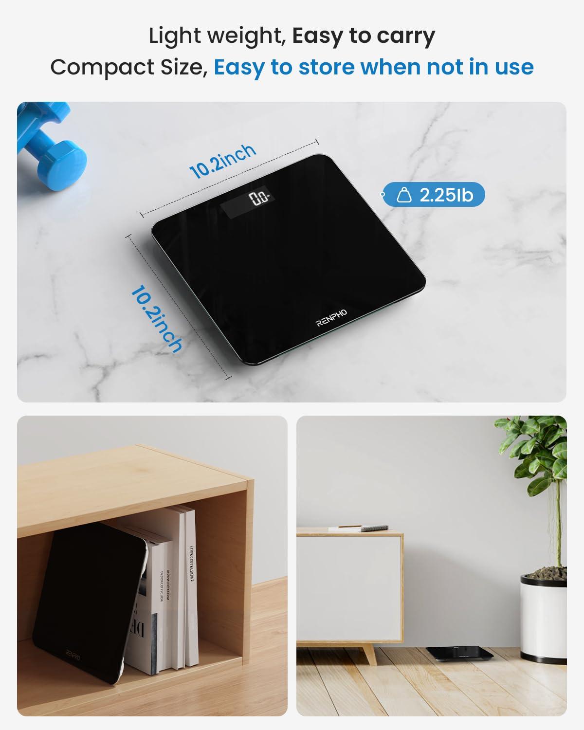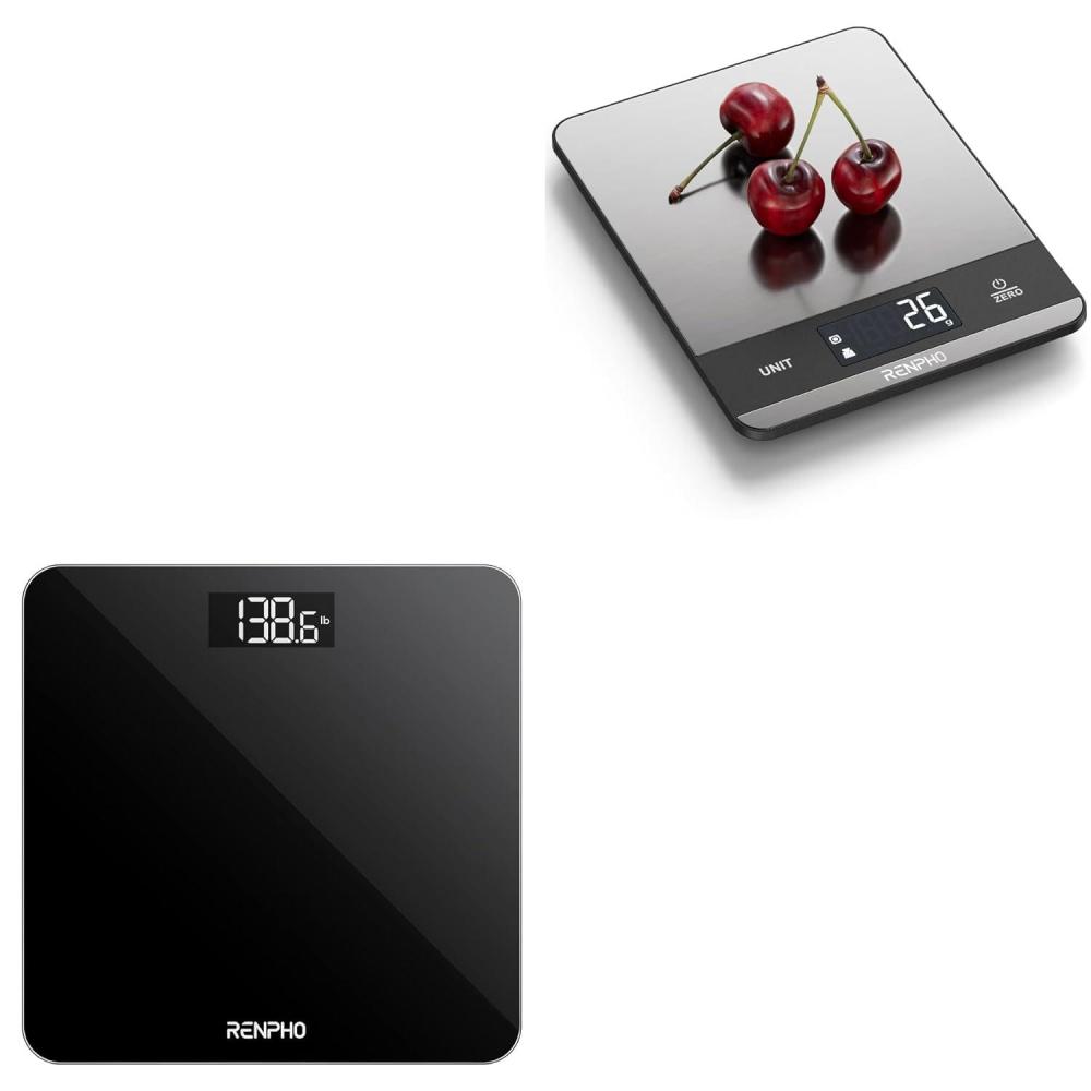 RENPHO Digital Bathroom Scale, Highly Accurate Body Weight Scale with Lighted LED Display, Round Corner Design, 400 lb, Black-Core 1S; RENPHO Food Scale, Digital Kitchen Scale Weight Ounce, Baking Scale 11lb, Stainless Steel Scale for Food, Cooking Scale with Battery Included, Kitchen Weight Scale with 7 Units, for Cooking and Baking RENPHO Food Scale, Digital Kitchen Scale Weight Ounce, Baking Scale 11lb, Stainless Steel Scale for Food, Cooking Scale with Battery Included, Kitchen Weight Scale with 7 Units, for Cooking and Baking