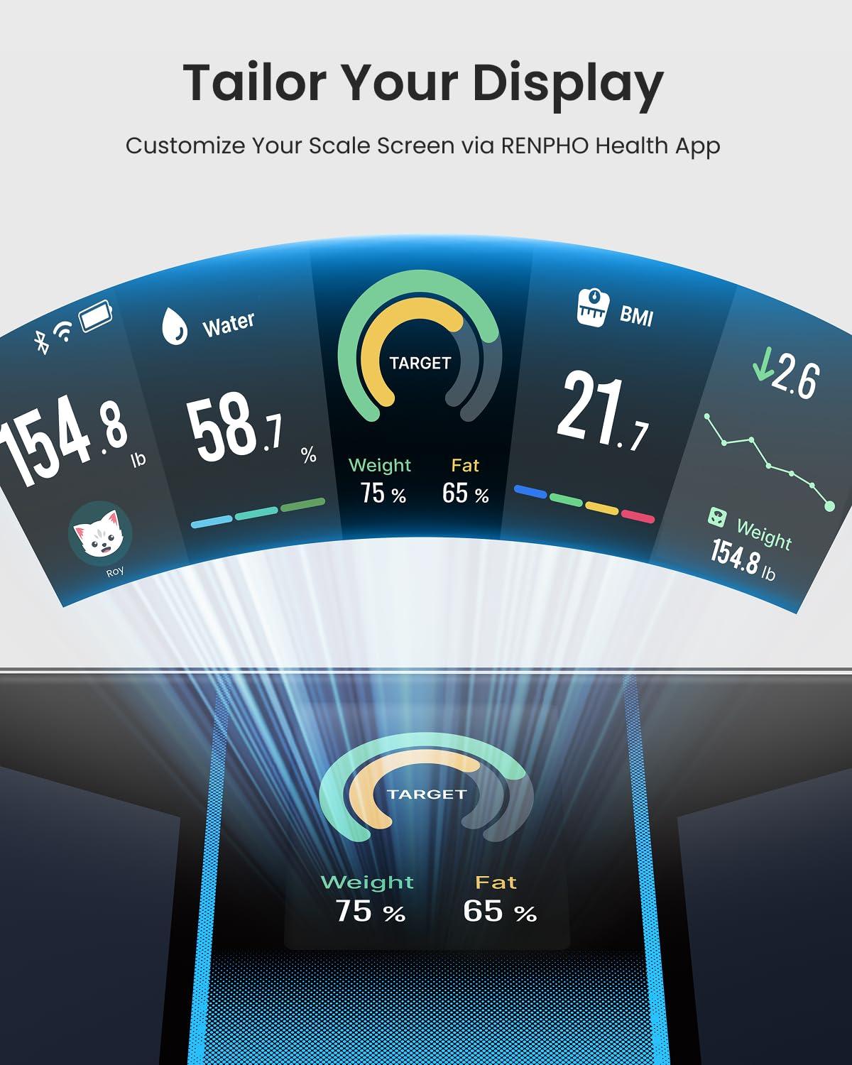 Vibrant TFT Display for 7 Health Metrics: See your weight, BMI, and 5 customizable biometrics all at a glance with this smart scale. Its multi-user function allows everyone in the family to get personalized reports and insights into their health.