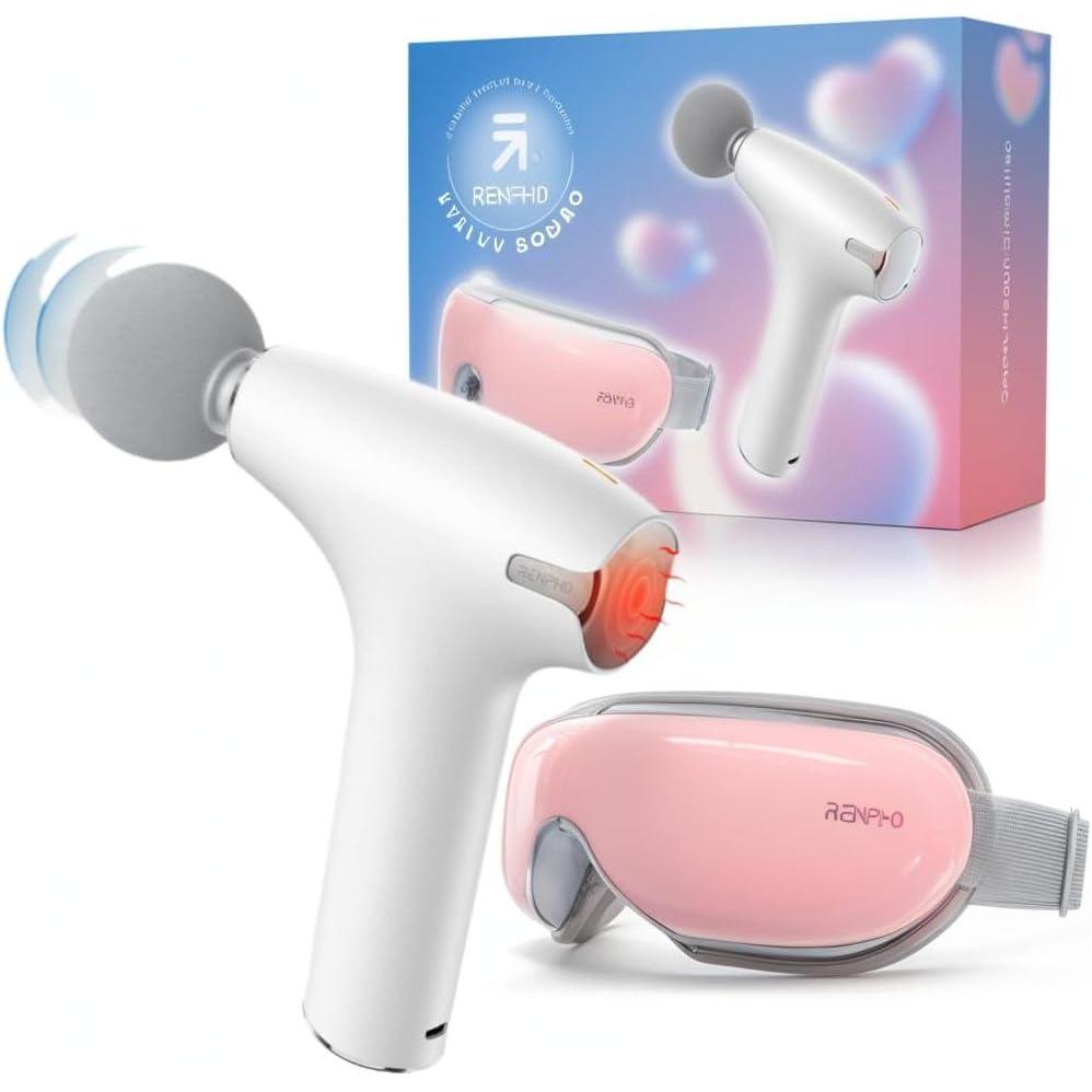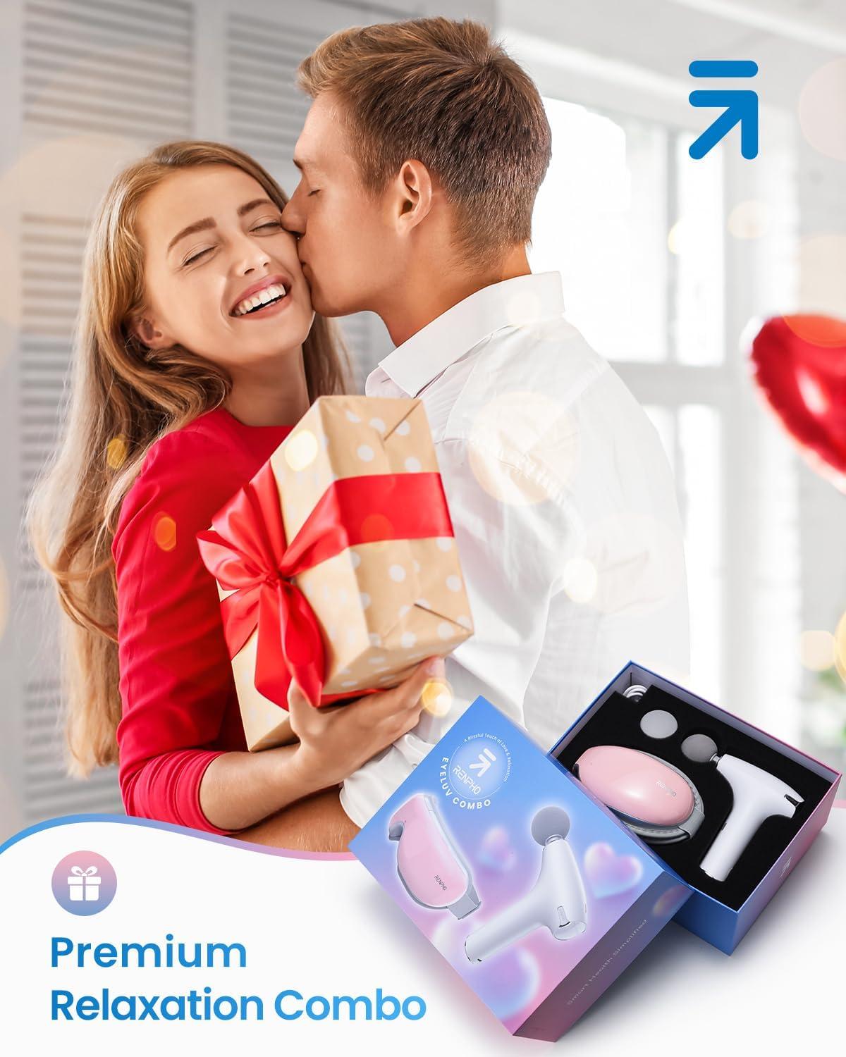 convenience and comfort: the temple massager and lite massage gun with heat uses a rechargeable battery, compact design and intuitive controls, making them always ready to use. Whether you're seeking quick relief from eye discomfort and muscle tension, on a travel or planning a cozy evening at home, the wellness combo offers you and your beloved shared and soothing experiences
