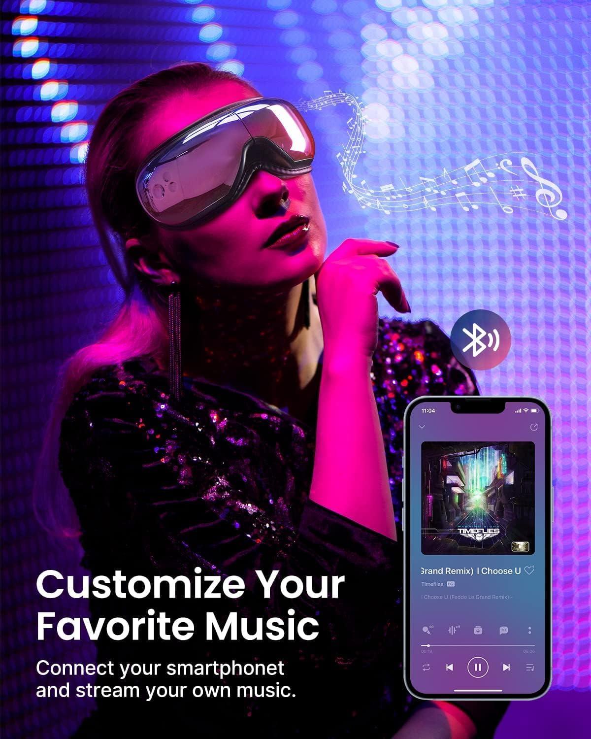 Reduce Eye Strain & Improve Sleeping – Our eye machine adopts oscillating pressure and rhythmic percussion massaging, which can make the skin around the eyes more shiny and elastic. Eye heating Massager with Bluetooth music can play a good sedative effect. Wear it for 15 minutes before going to bed every night, you will be relaxed and enjoy a better sweet dream. Our eye care machine also can effectively help you be refreshed after a long work or study