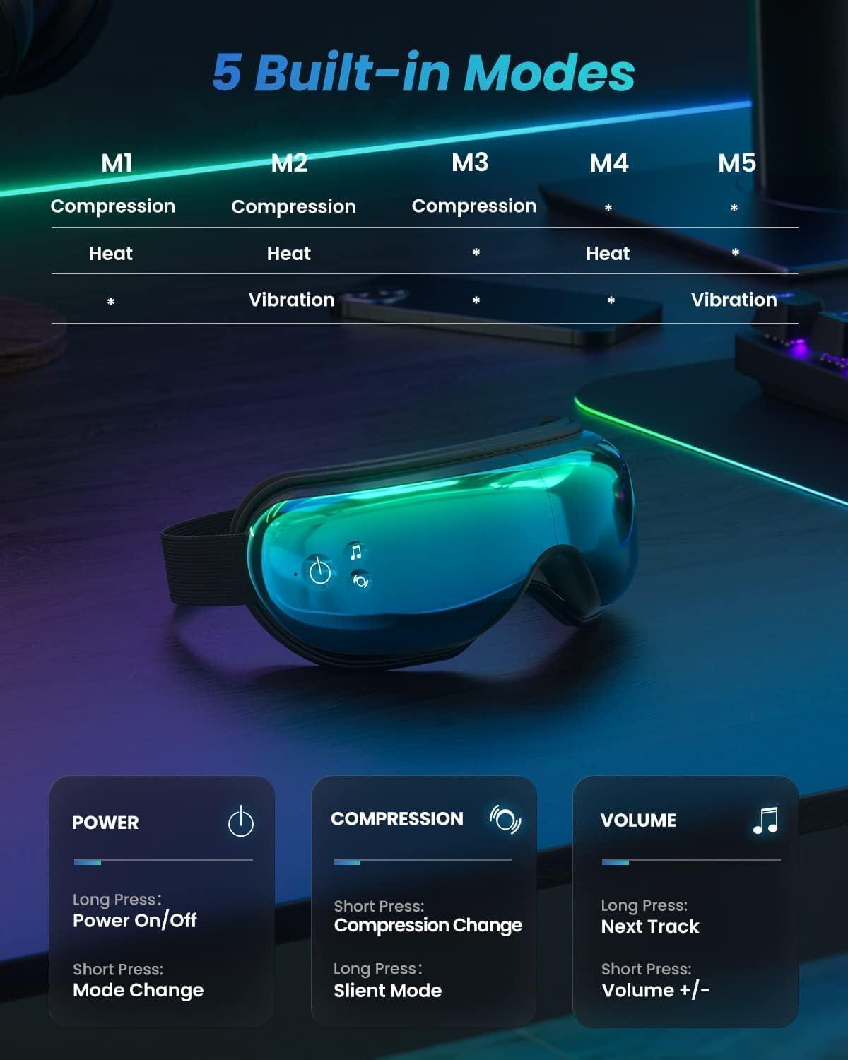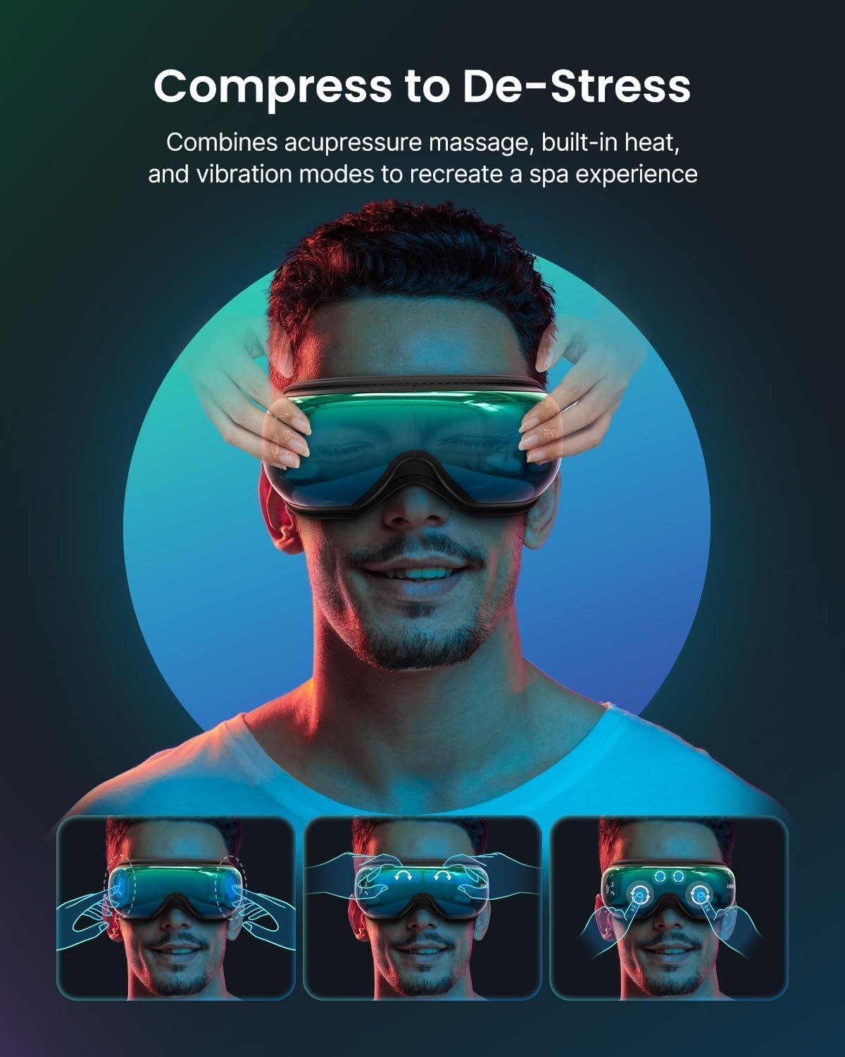 RENPHO Eye Massager with Heat, Compression, Customized Eye Care Machine, Heated Sleep Mask for Eye Strain Relief, Migraine Relief, Improve Sleep, Birthday Gifts for Women Men(Gradient Green)