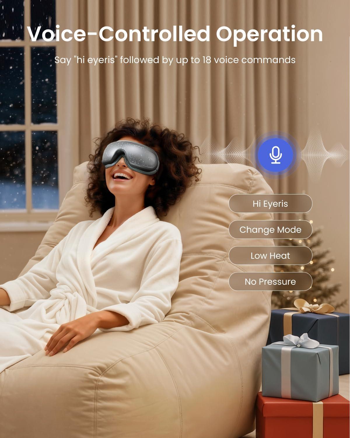 Upgraded Voice-Activated Operation: Revolutionize your self-care experience with the ease of voice control. With an extensive repertoire of 18 voice commands—all without lifting a finger, the RENPHO EYERIS 3 allows you to effortlessly fine-tune your massage settings.