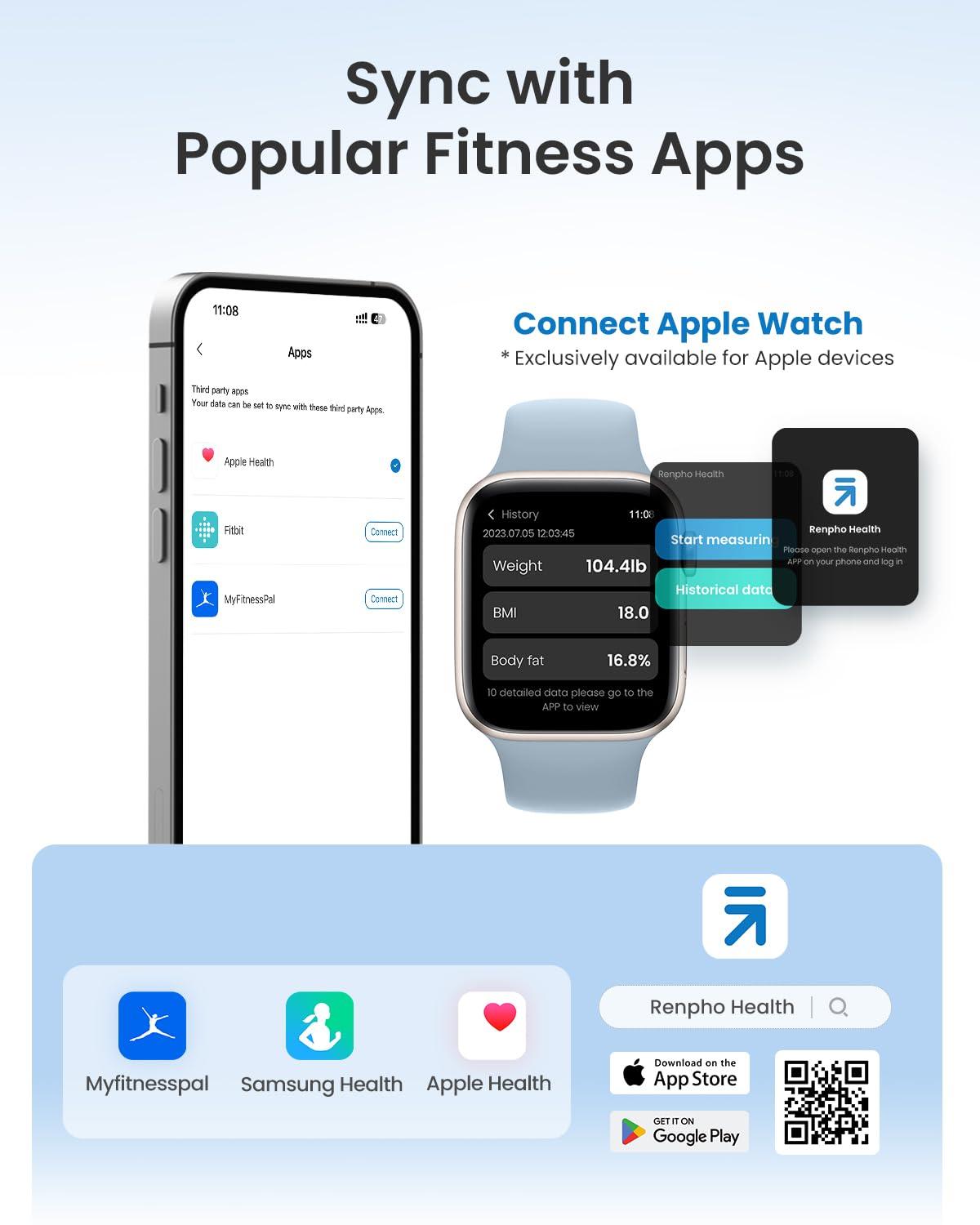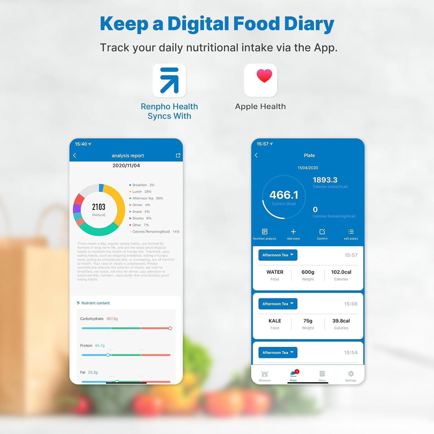 Health Management Expert: Download the Renpho Health app to track and record food data, calculate calories, offer a detailed nutritional analysis, and support syncing with Apple Health. The user-friendly app contains an extensive USDA food database, allowing you to add and customize your food data in the APP as needed.
