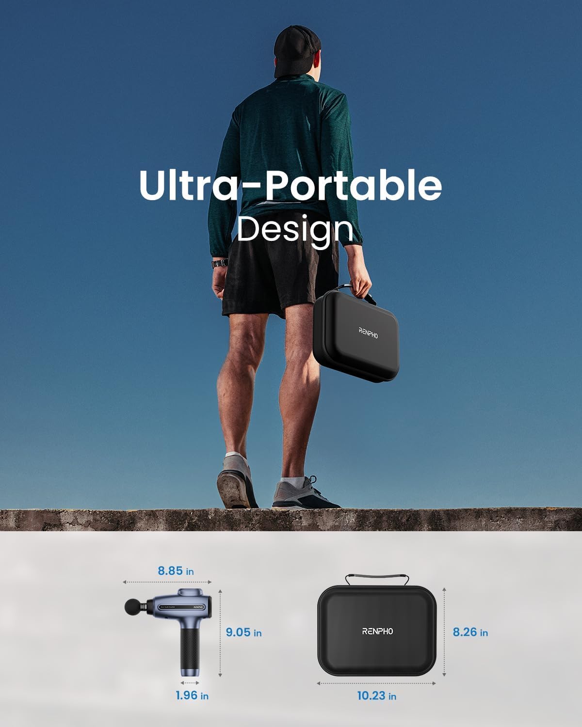 Lightweight & Portable Case:The RENPHO Massage Gun comes with a convenient case for easy travel and storage of the massage gun and its accessories. Take it with you wherever you go.
