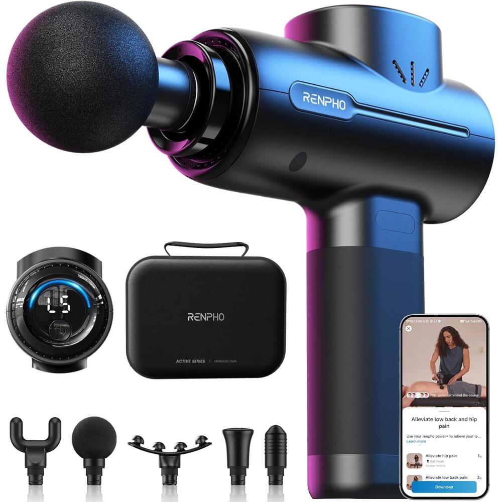 RENPHO Massage Gun Deep Tissue, Portable Percussion Massager for Back and Neck, Gifts for Men and Women, Handheld Device with Carry Case, Active(A Active+ Thermacool Pro)