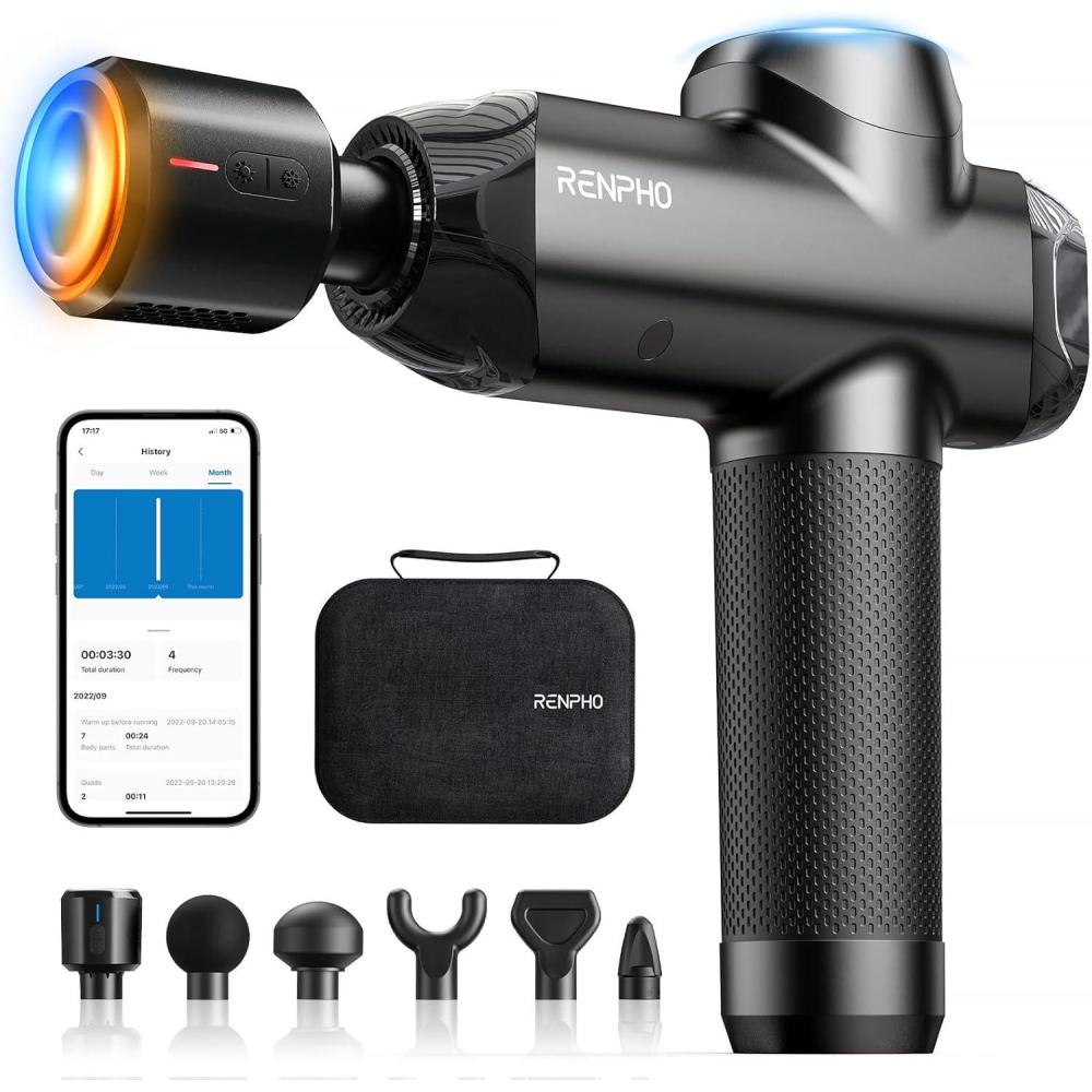 RENPHO Massage Gun Deep Tissue with 12mm Amplitude, Christmas Gifts, Percussion Muscle Massager, Portable Electric Handheld Massage Gun with LED Touch Display(Power+ Thermacool Deluxe Pro)