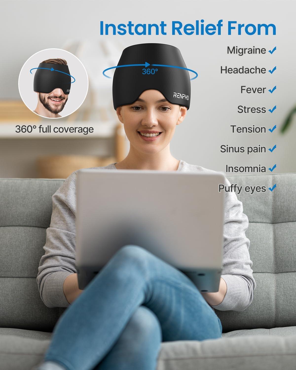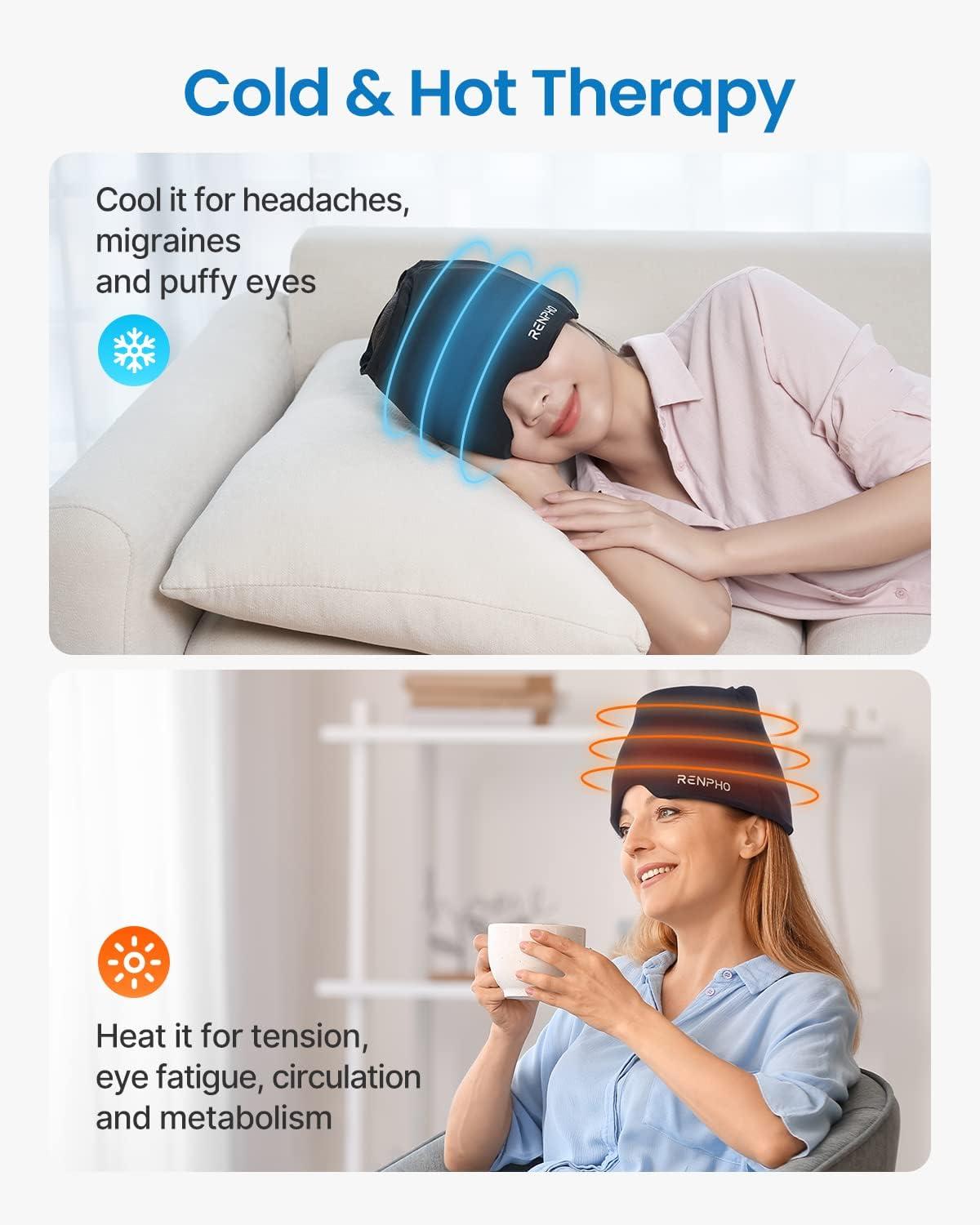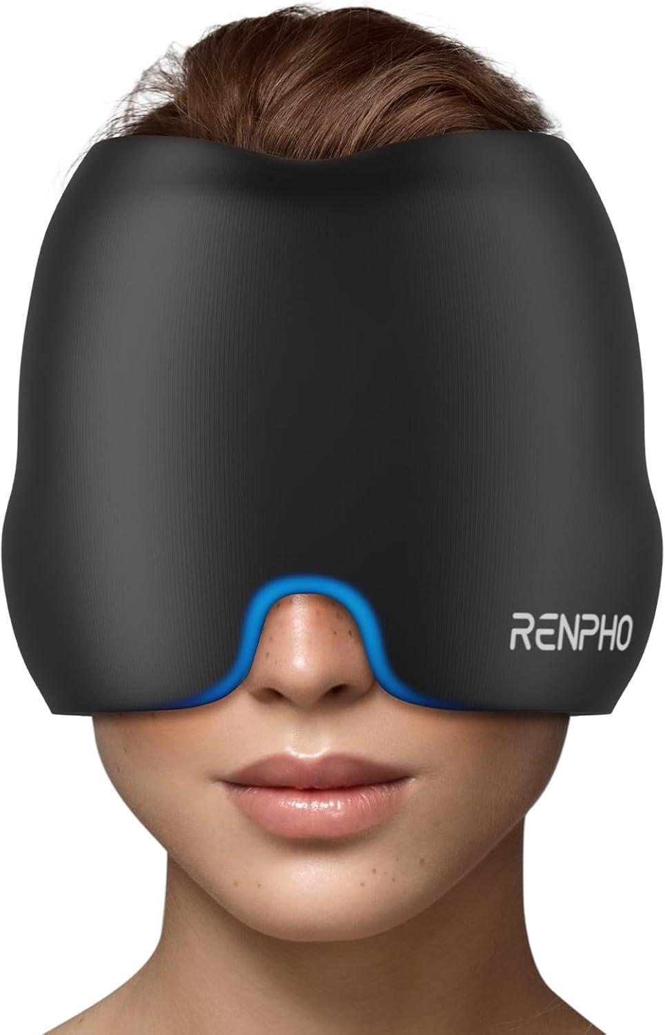 RENPHO Migraine Ice Head Wrap, FSA or HSA Eligible Headache Relief Hat with Hot or Cold Therapy, Migraine Relief Products Device, Heat or Cool Compress Cap, Gift for Reduce Migraine, Sinus, Stress & RENPHO Massage Gun Deep Tissue Muscle Percussion Massage Gun, FSA and HSA Eligible Powerful Portable Back Massager Gun for Athletes, Handheld Back Massagers, Carry Case, Active