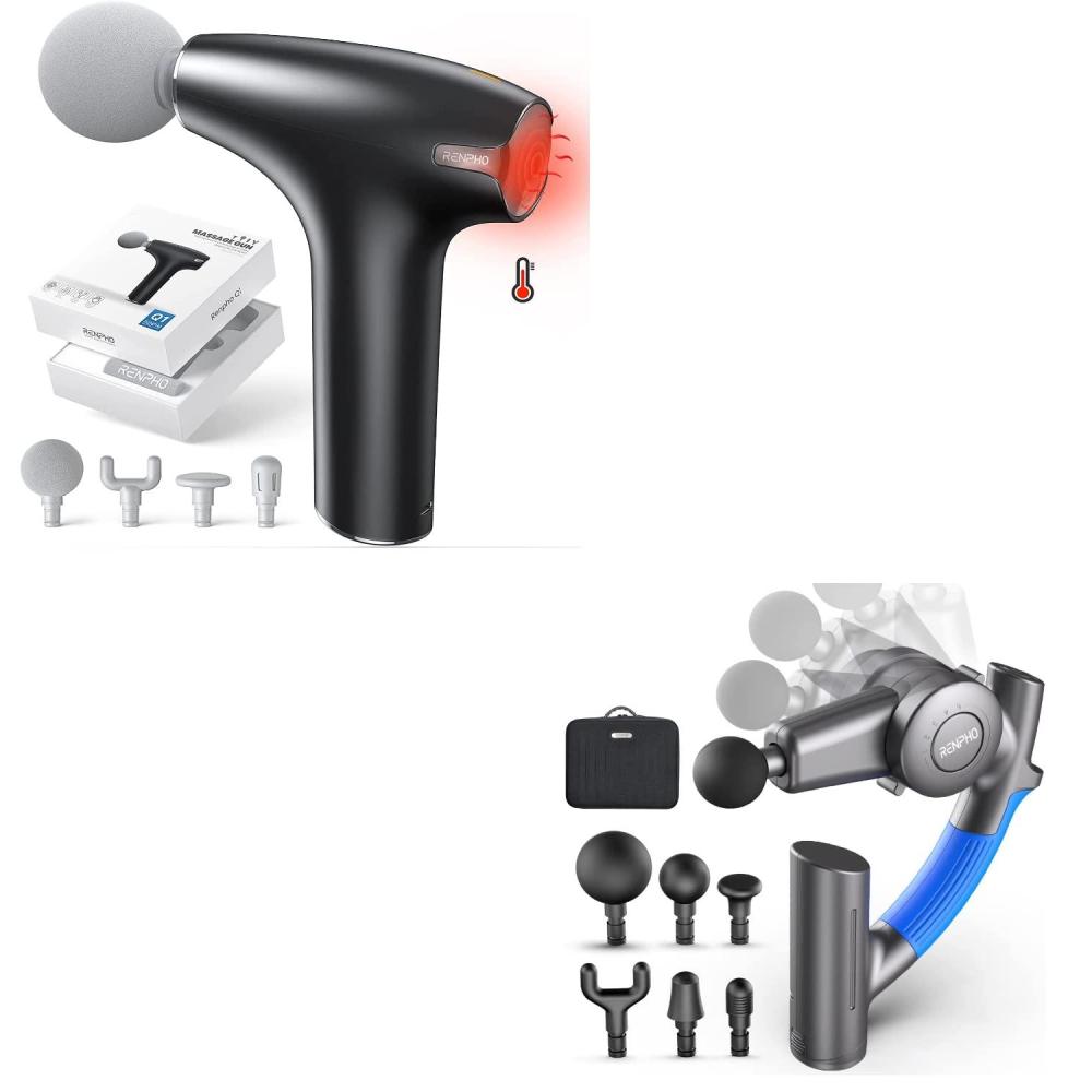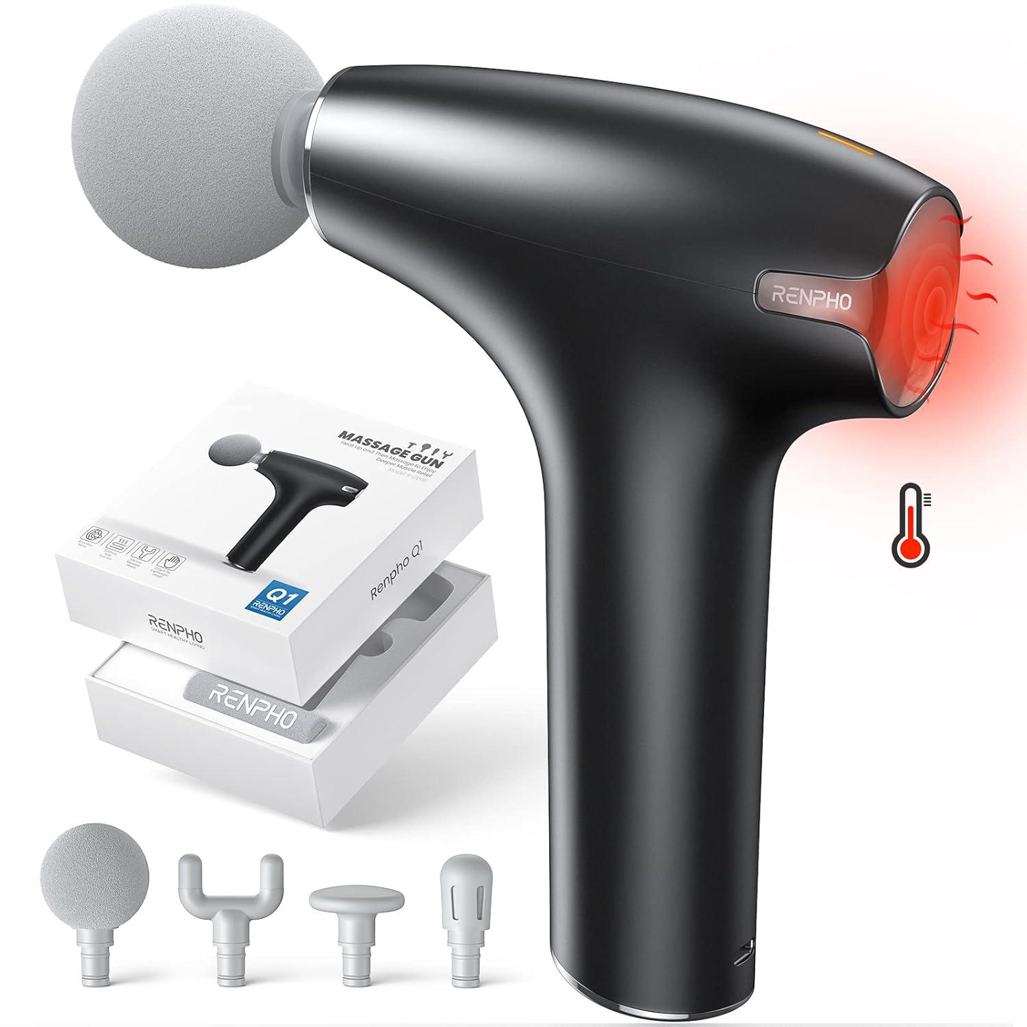 RENPHO Heated Mini Massage Gun–Small Travel Massage Gun: Weighted only 0.7 lb, this mini massage gun can be packed into a carrying bag, which is convenient to carry to the gym, office, or travel. This portable massage gun designed with an ergonomic handle delivers a comfortable grip and allows you to reach and deep massage your neck and back.