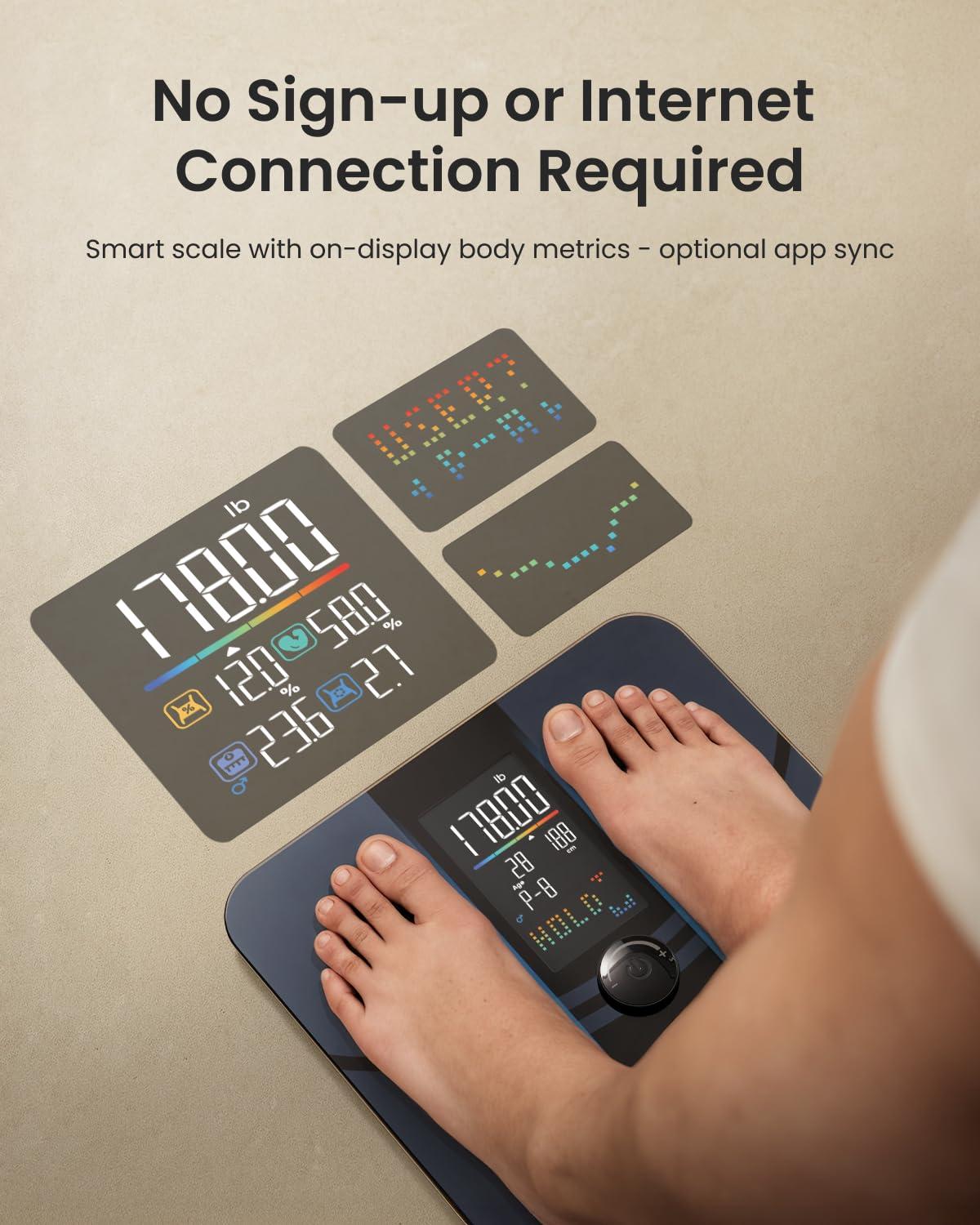 One Dial Control: Take control without needing a smartphone. This advanced scale for body weight allows you to create user profiles directly on the scale using the dial—simply twist and press for a streamlined experience.