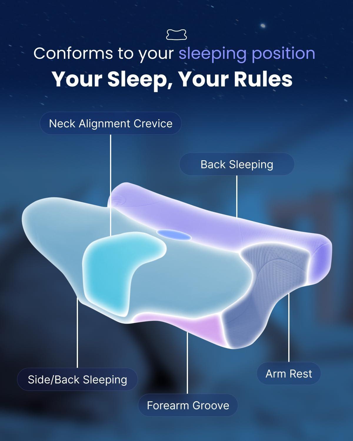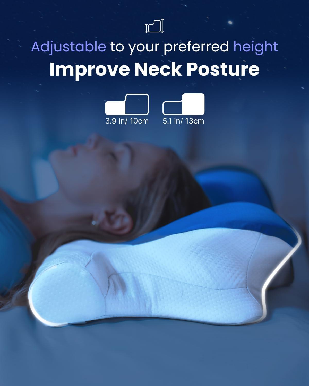 Ergonomic Spinal Support: Crafted with contoured memory foam, the cervical neck pillow conforms to the natural curves of your neck and spine, easing cervical strain and promoting proper spinal alignment for deep, restorative sleep