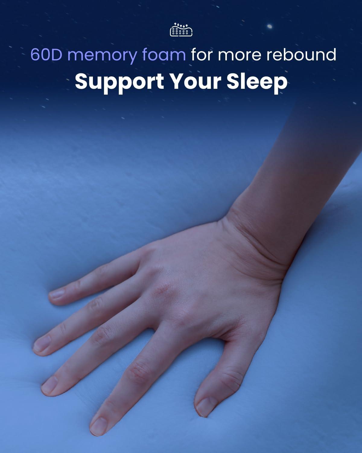 60D Slow-Rebound Elasticity: The high-density 60D memory foam ensures the neck pillow gradually adjusts to your body shape, providing a responsive feel that enhances sleep quality while maintaining its structure and support night after night